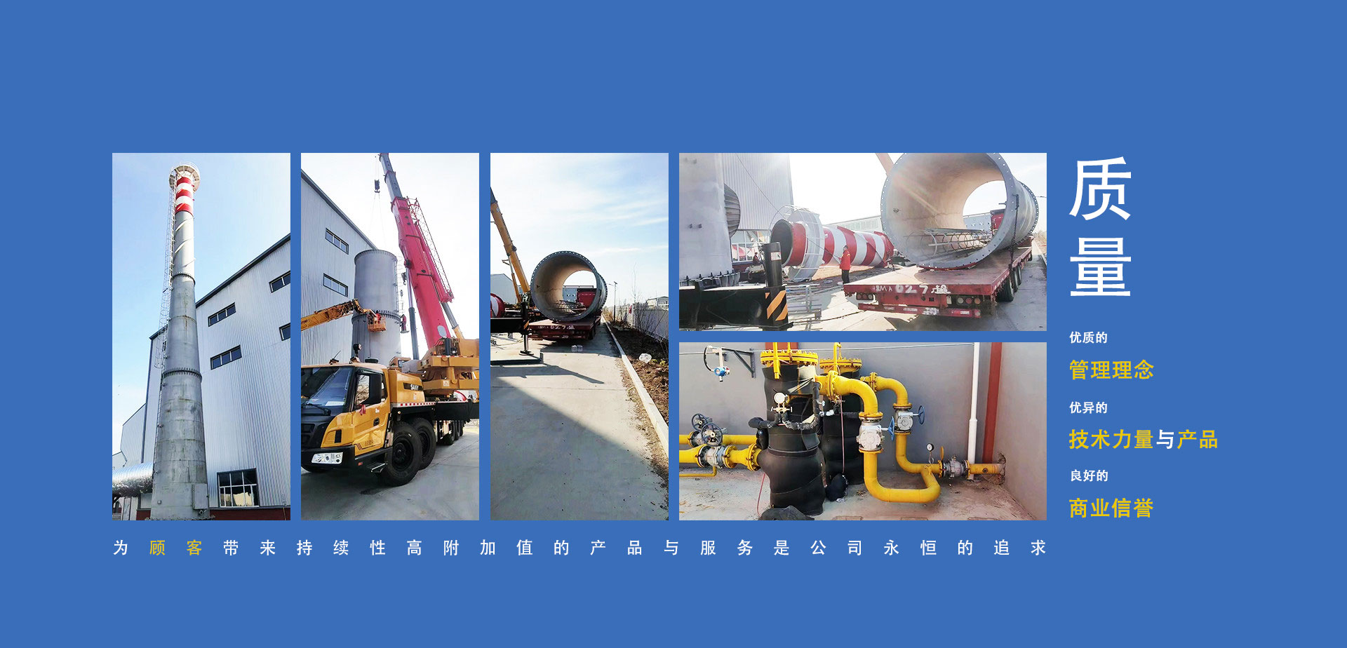 公司制定了“以質(zhì)量求生存、以管理求發(fā)展、以服務(wù)增信譽”的質(zhì)量方針。通過了質(zhì)量管理體系、環(huán)境管理體系、職業(yè)健康安全管理體系、企業(yè)信用評價管理體系(AAA級)、五星級售后服務(wù);取得了D1、D2級壓力容器制造生產(chǎn)許可資質(zhì),壓力管道元件制造生產(chǎn)許可資質(zhì);黑龍江省高新技術(shù)企業(yè)。